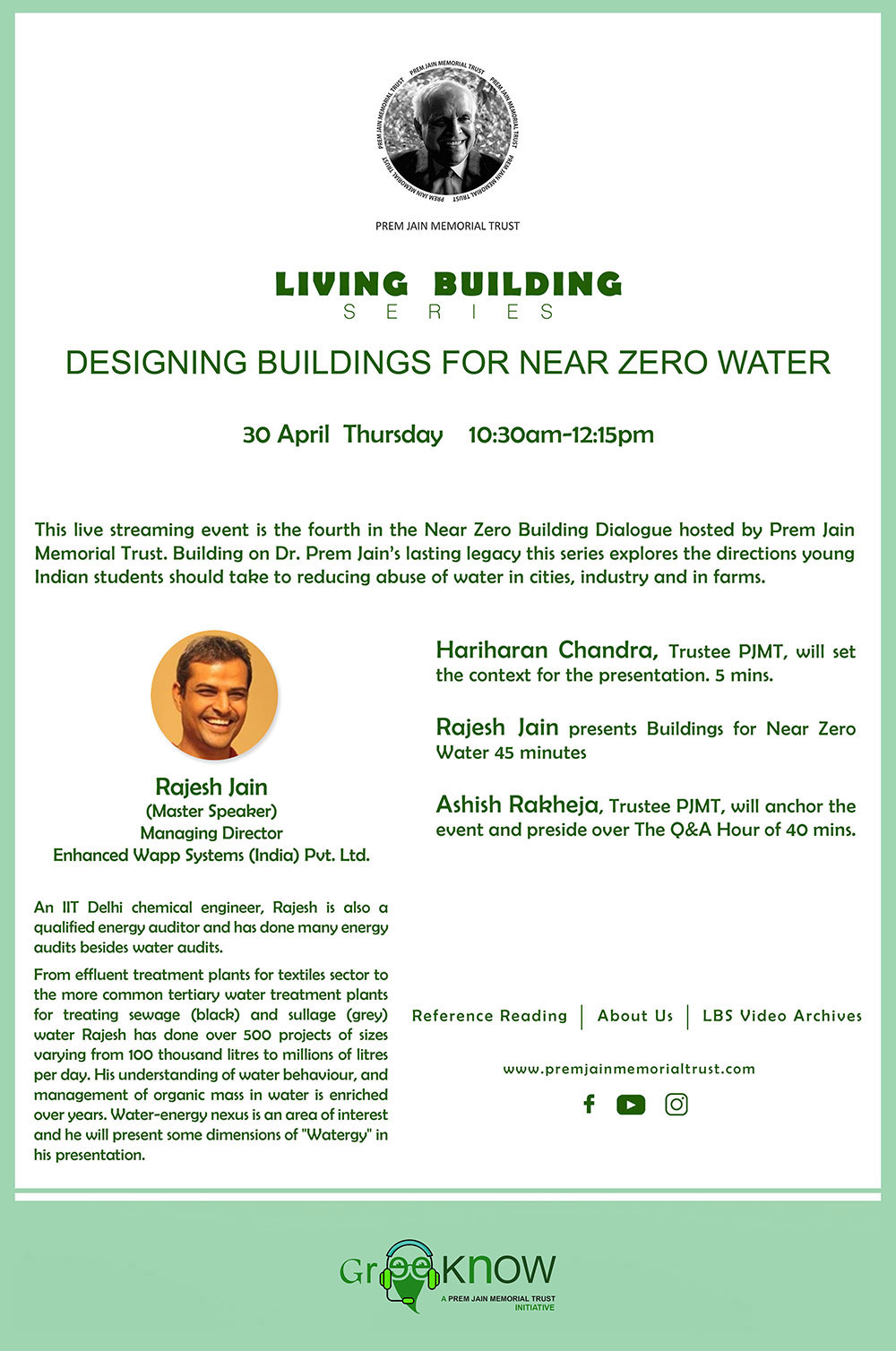 Dr. Prem Jain, architect of the modern green building movement in India is revered as the “Father of Green Buildings”. He ushered in a paradigm shift in the way buildings are conceived, designed worldwide and facilitated. India stands tall in the global green building movement and aspired for "Bharat to emerge as Jagat Guru in Sustainable Built Environment”.